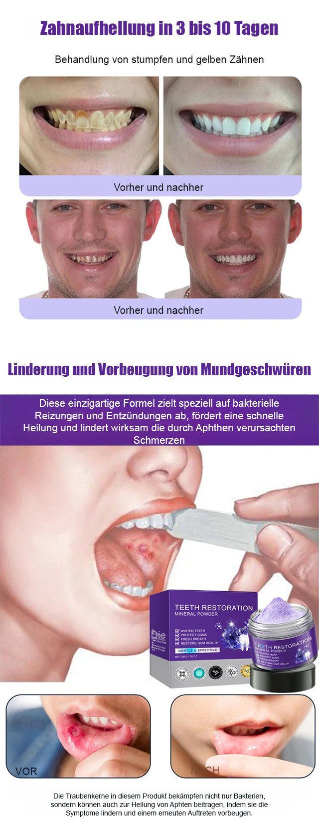 【Zahnpflege-Regeneration】Zahnreparatur und Aufhellung mit mineralischem Zahnpulver